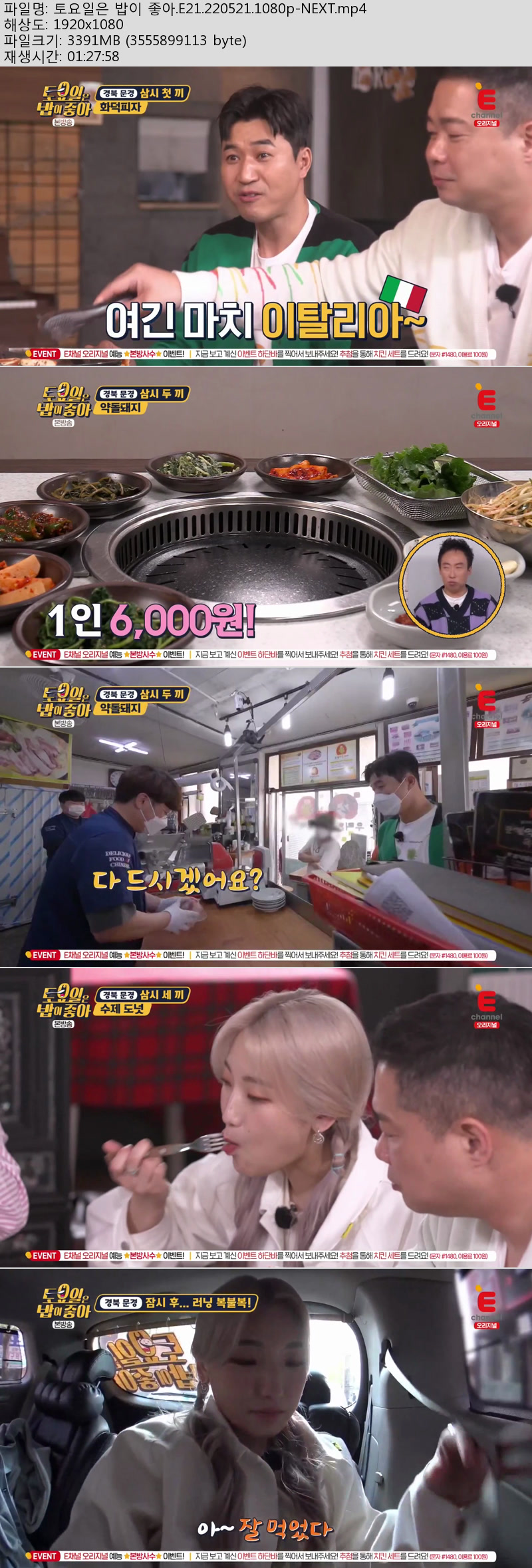 | 토요일은 밥이 좋아.E21.220521.1080p-NEXT.mp4 | 3.3 G | 01:27:58 | 1920x1080 |