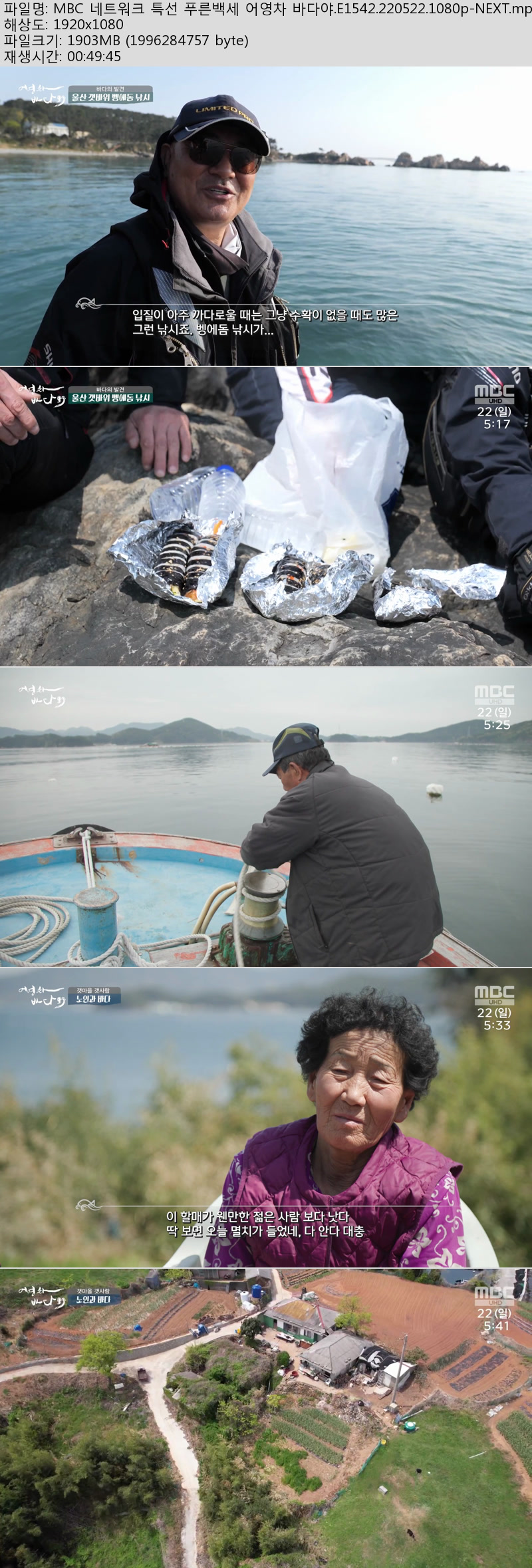 | MBC 네트워크 특선 푸른백세 어영차 바다야.E1542.220522.1080p-NEXT.mp4 | 1.9 G | 00:49:45 | 1920x1080 |
