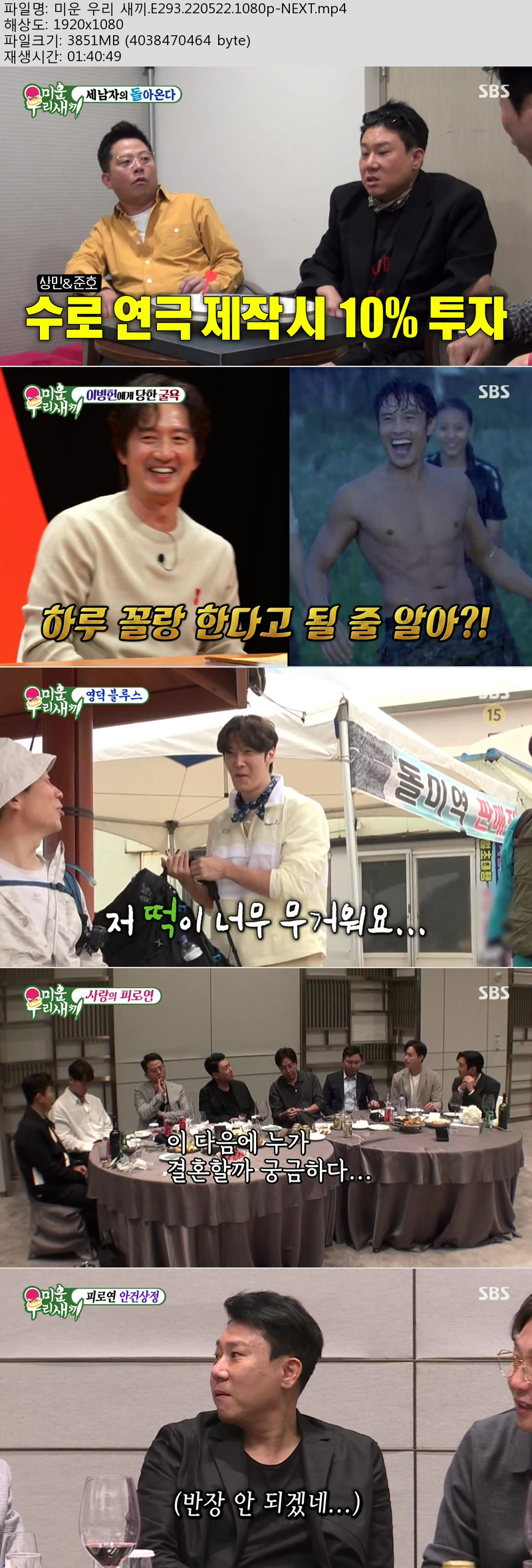 미운 우리 새끼.E293.220522.1080p-NEXT.mp4 3.8 G 01:40:49 1920x1080