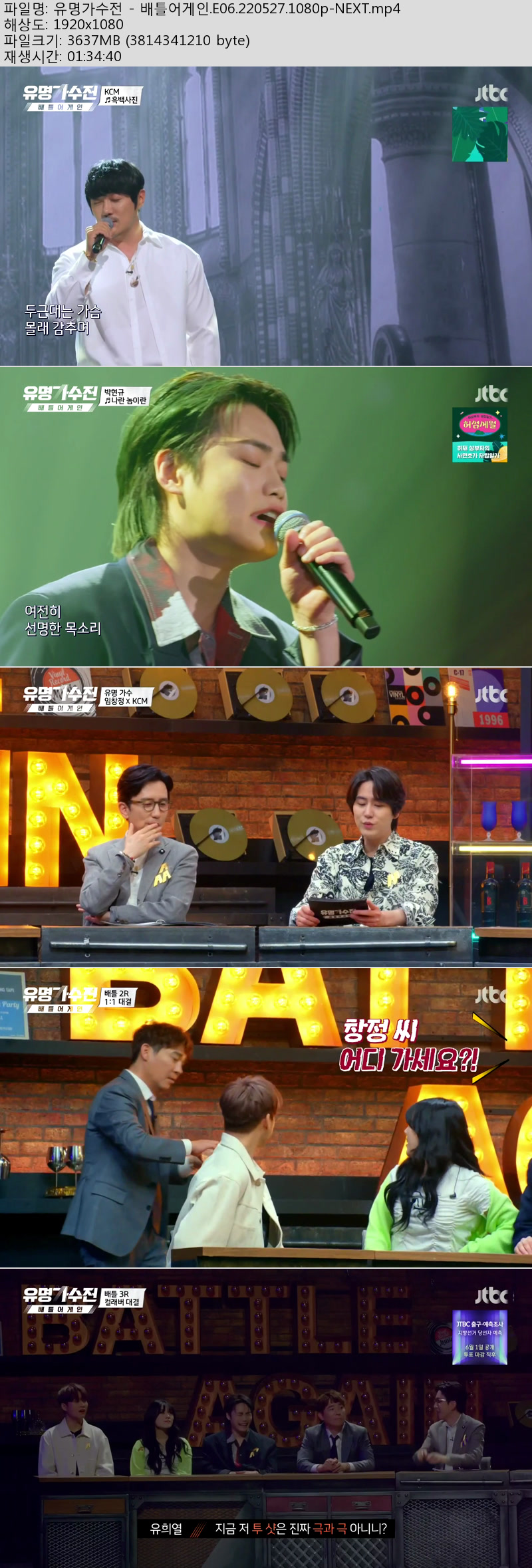 | 유명가수전 - 배틀어게인.E06.220527.1080p-NEXT.mp4 | 3.6 G | 01:34:40 | 1920x1080 |