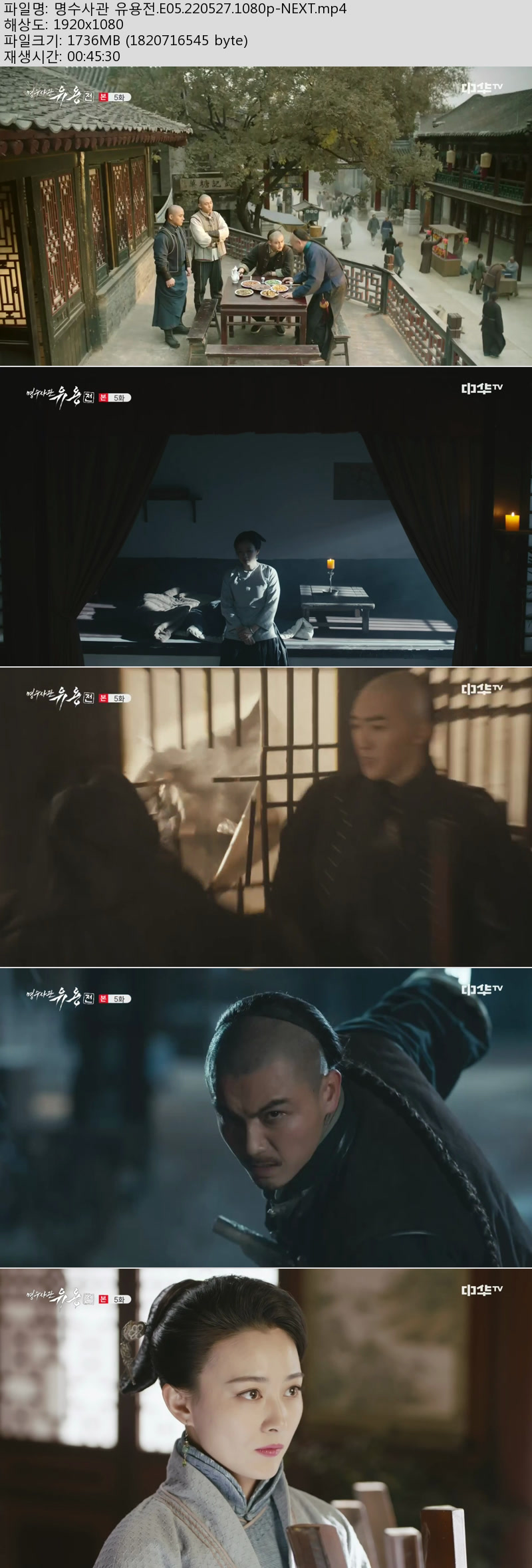 | 명수사관 유용전.E05.220527.1080p-NEXT.mp4 | 1.7 G | 00:45:30 | 1920x1080 |