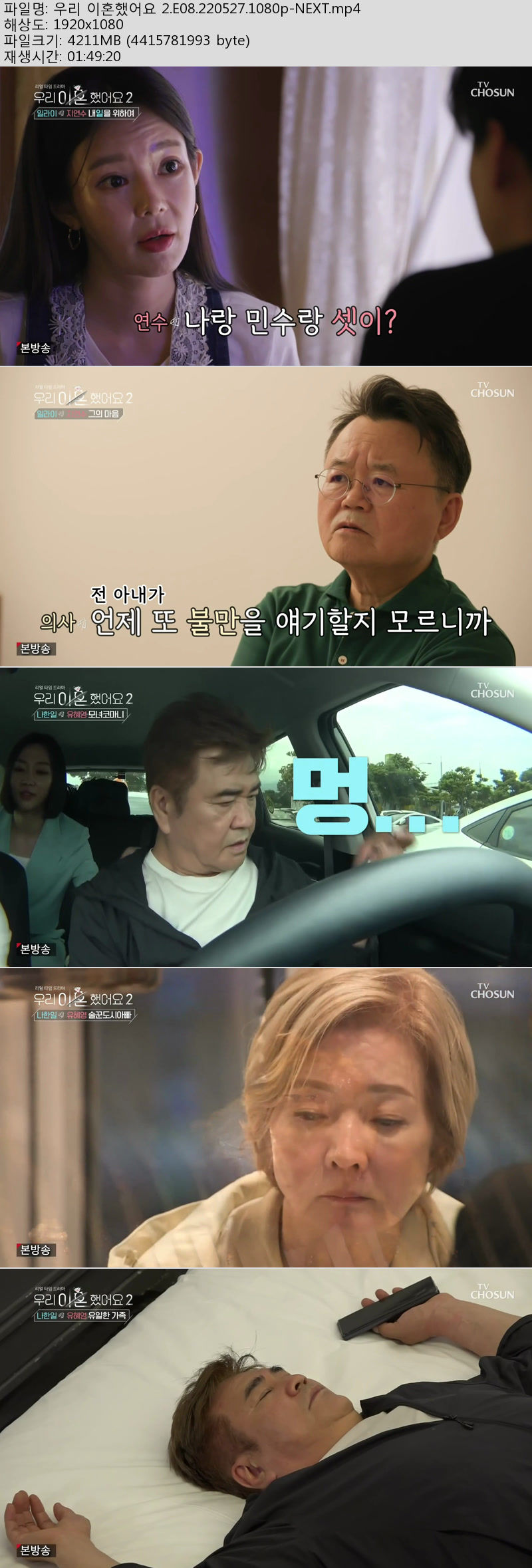 | 우리 이혼했어요 2.E08.220527.1080p-NEXT.mp4 | 4.1 G | 01:49:20 | 1920x1080 |