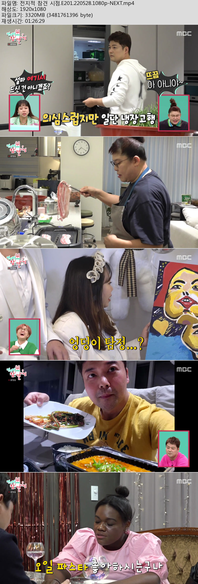| 전지적 참견 시점.E201.220528.1080p-NEXT.mp4 | 3.2 G | 01:26:29 | 1920x1080 |