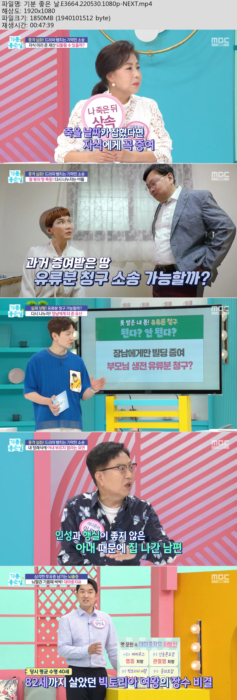 | 기분 좋은 날.E3664.220530.1080p-NEXT.mp4 | 1.8 G | 00:47:39 | 1920x1080 |