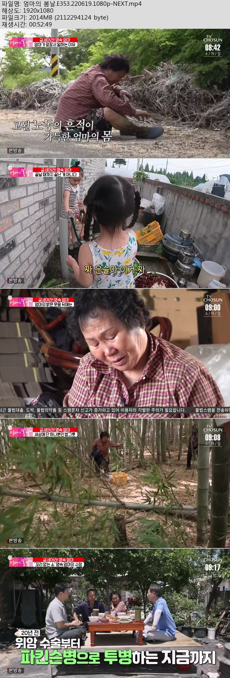 | 엄마의 봄날.E353.220619.1080p-NEXT.mp4 | 2 G | 00:52:49 | 1920x1080 |