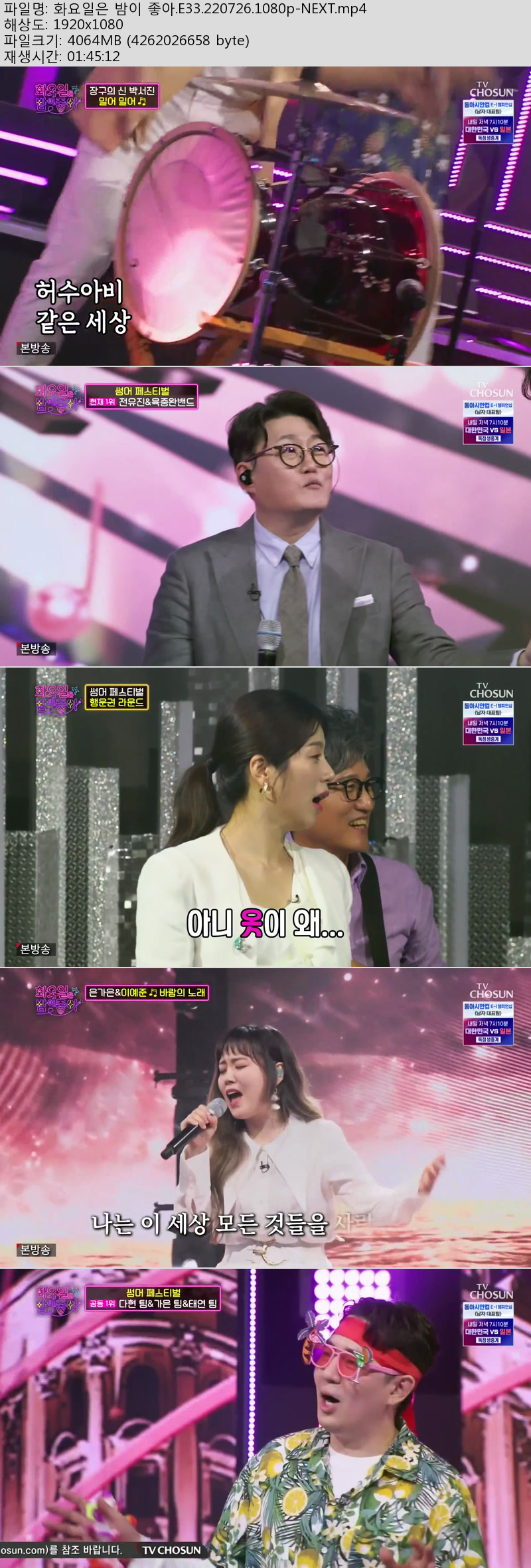 | 화요일은 밤이 좋아.E33.220726.1080p-NEXT.mp4 | 4 G | 01:45:12 | 1920x1080 |