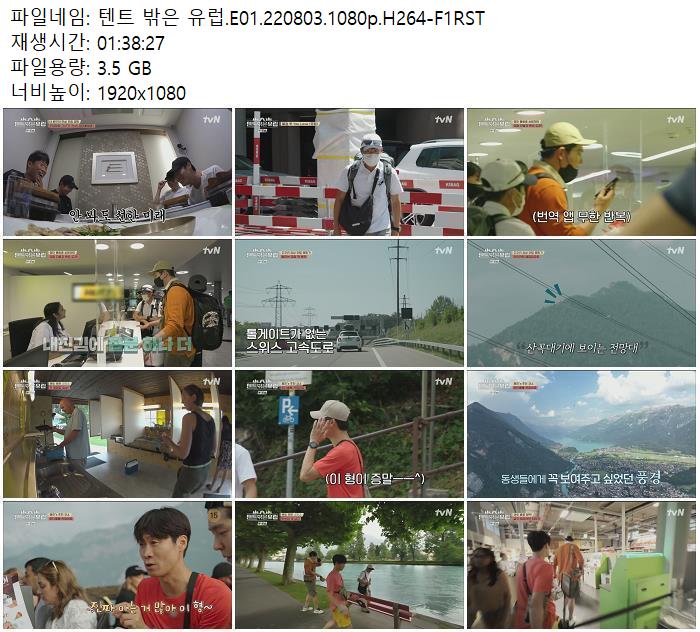 | 텐트 밖은 유럽.E01.220803.1080p.H264-F1RST.mp4 | 3.5 G | 01:38:27 | 1920x1080 |