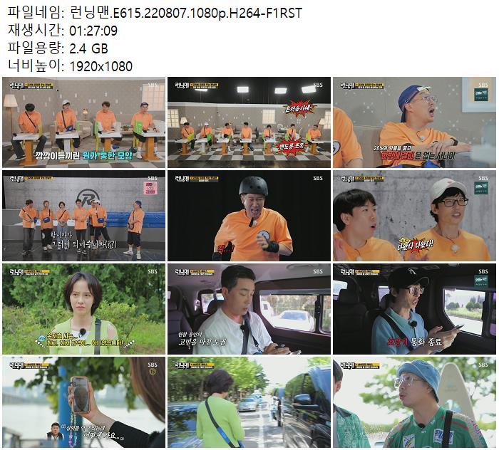 런닝맨.E615.220807.1080p.H264-F1RST.mp4 2.4 G 01:27:09 1920x1080