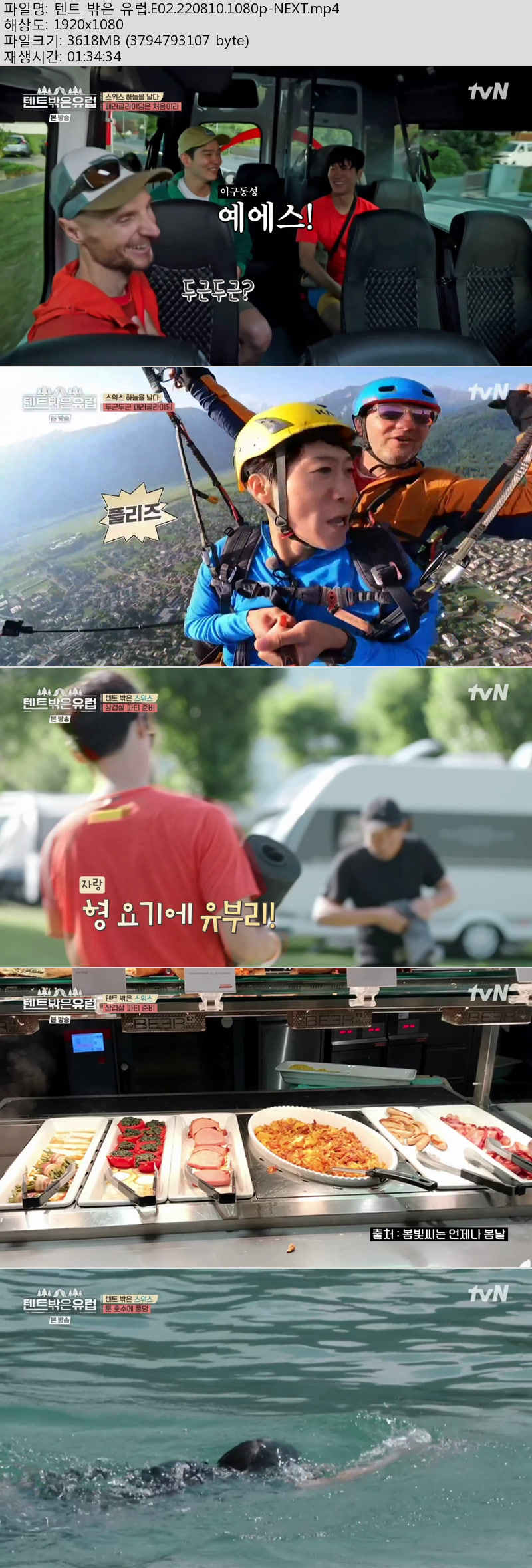 | 텐트 밖은 유럽.E02.220810.1080p-NEXT.mp4 | 3.5 G | 01:34:34 | 1920x1080 |