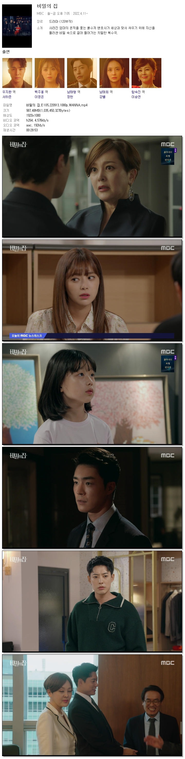 비밀의 집.E105.220913.1080p.WANNA.mp4 987.5 M 00:28:53 1920x1080