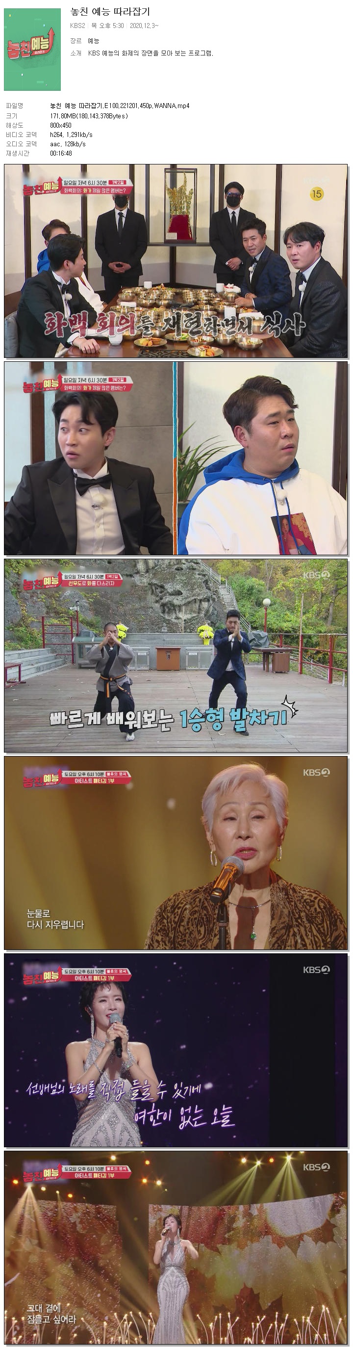 | 놓친 예능 따라잡기.E100.221201.450p.WANNA.mp4 | 171.8 M | 00:16:48 | 800x450 |