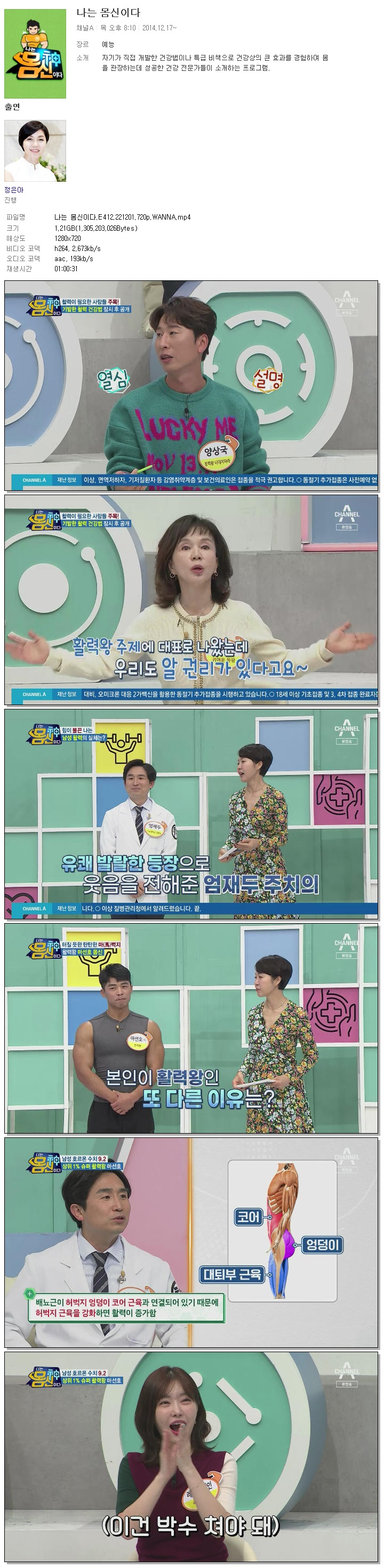 | 나는 몸신이다.E412.221201.720p.WANNA.mp4 | 1.2 G | 01:00:31 | 1280x720 |