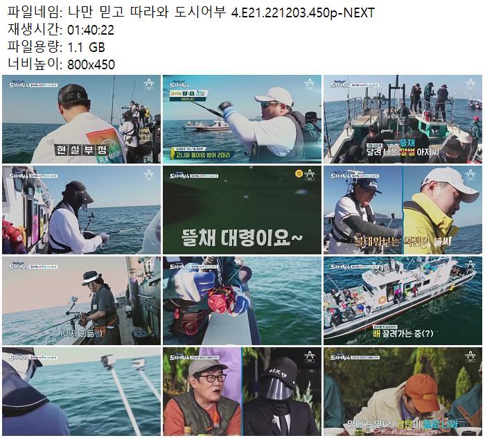 | 나만 믿고 따라와 도시어부 4.E21.221203.450p-NEXT.mp4 | 1.1 G | 01:40:22 | 800x450 |
