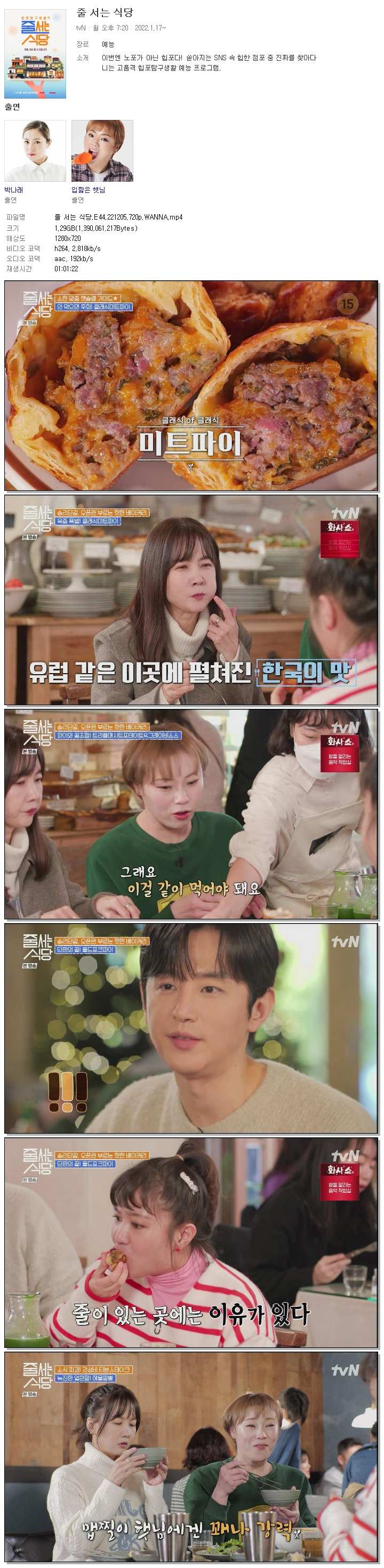 | 줄 서는 식당.E44.221205.720p.WANNA.mp4 | 1.3 G | 01:01:22 | 1280x720 |