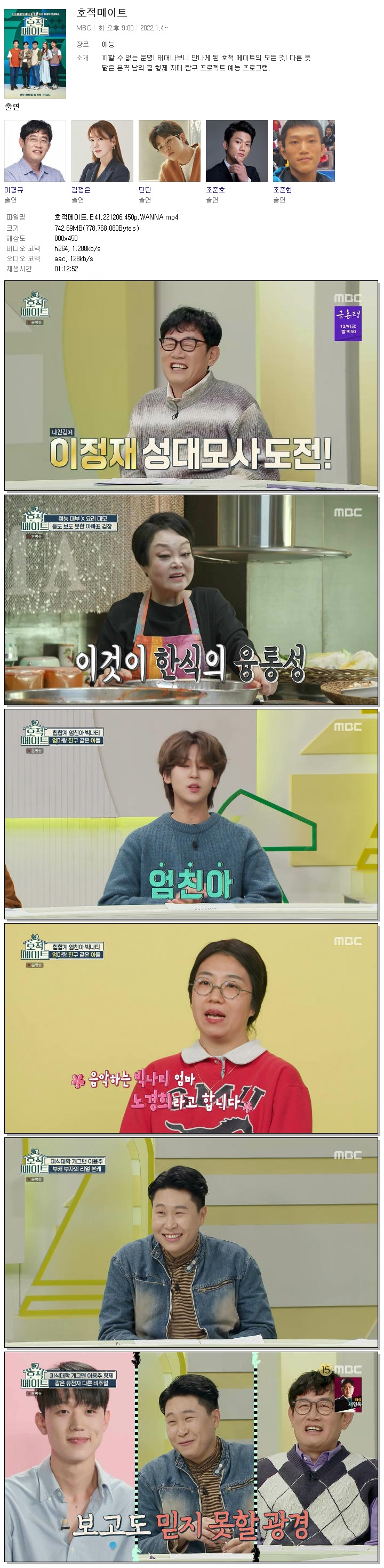 | 호적메이트.E41.221206.450p.WANNA.mp4 | 742.7 M | 01:12:52 | 800x450 |