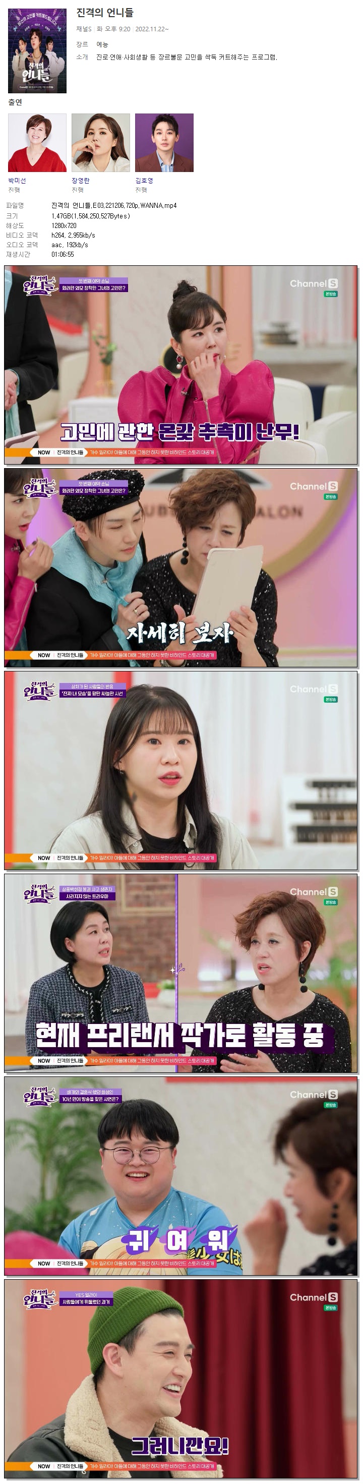 | 진격의 언니들.E03.221206.720p.WANNA.mp4 | 1.5 G | 01:06:55 | 1280x720 |
