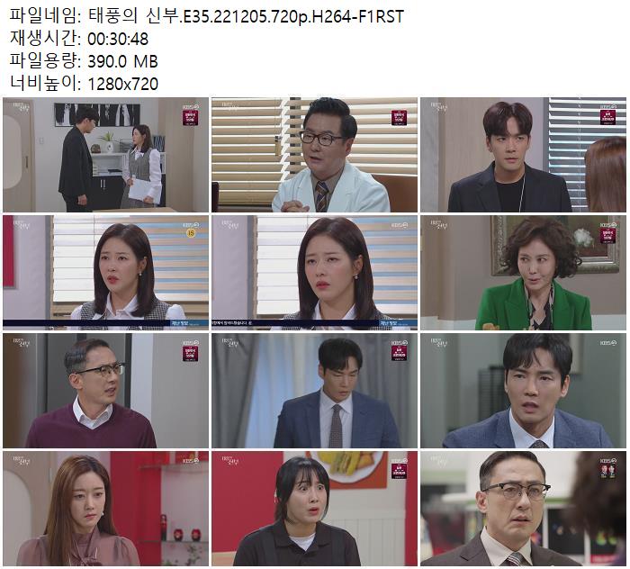 | 태풍의 신부.E35.221205.720p.H264-F1RST.mp4 | 390 M | 00:30:48 | 1280x720 |