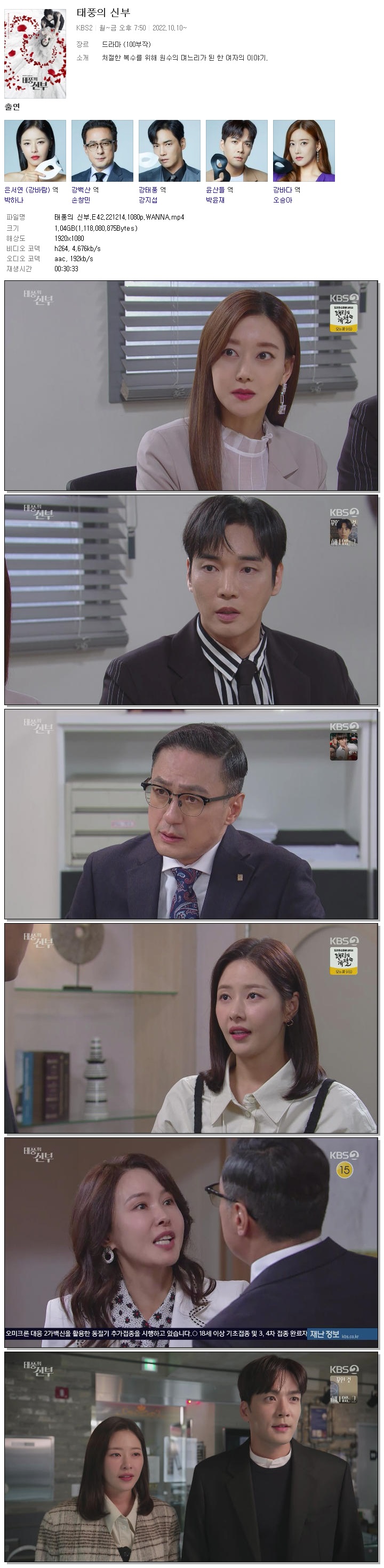 | 태풍의 신부.E42.221214.1080p.WANNA.mp4 | 1 G | 00:30:33 | 1920x1080 |