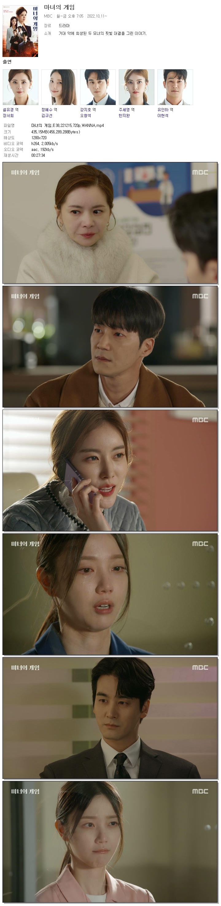 | 마녀의 게임.E38.221215.720p.WANNA.mp4 | 435.2 M | 00:27:34 | 1280x720 |