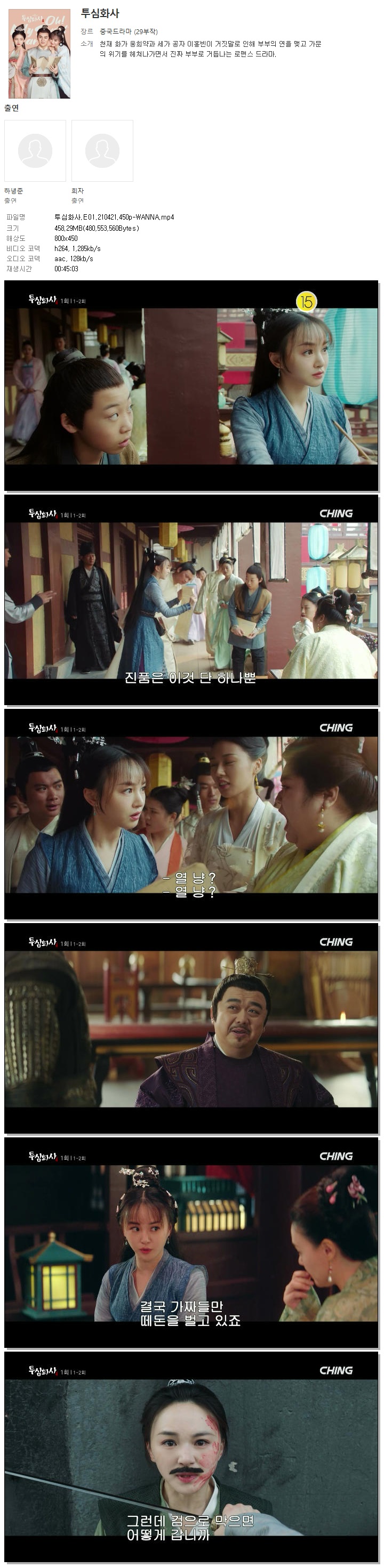 | 투심화사.E01.210421.450p-WANNA.mp4 | 458.3 M | 00:45:03 | 800x450 |