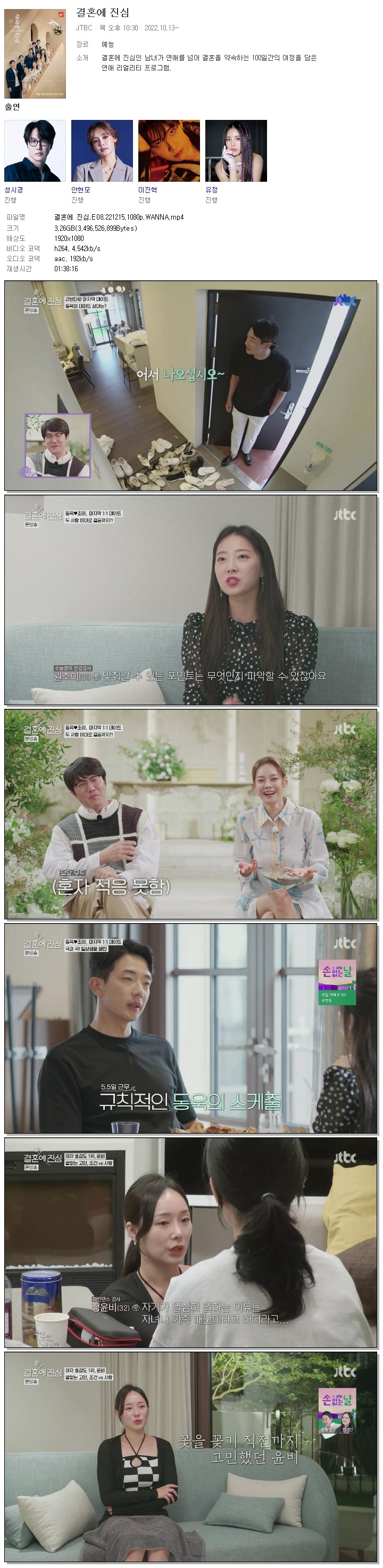 | 결혼에 진심.E08.221215.1080p.WANNA.mp4 | 3.3 G | 01:38:16 | 1920x1080 |