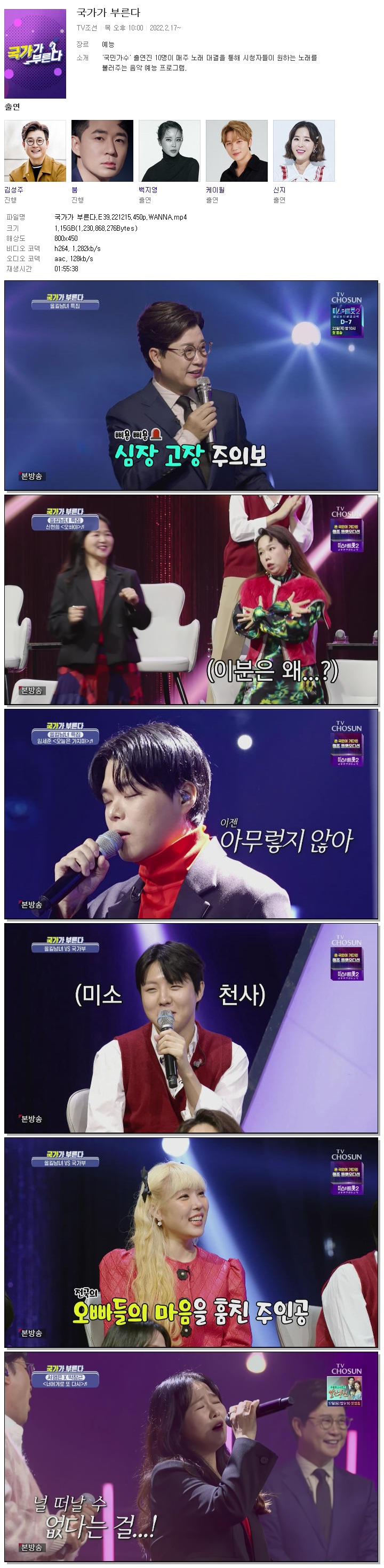 | 국가가 부른다.E39.221215.450p.WANNA.mp4 | 1.1 G | 01:55:38 | 800x450 |