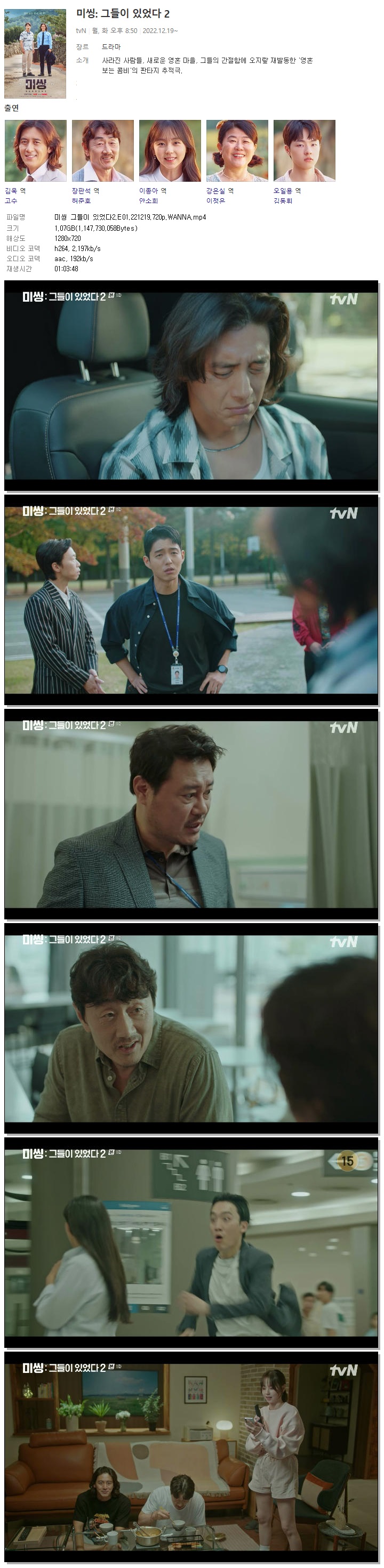 | 미씽 그들이 있었다2.E01.221219.720p.WANNA.mp4 | 1.1 G | 01:03:48 | 1280x720 |