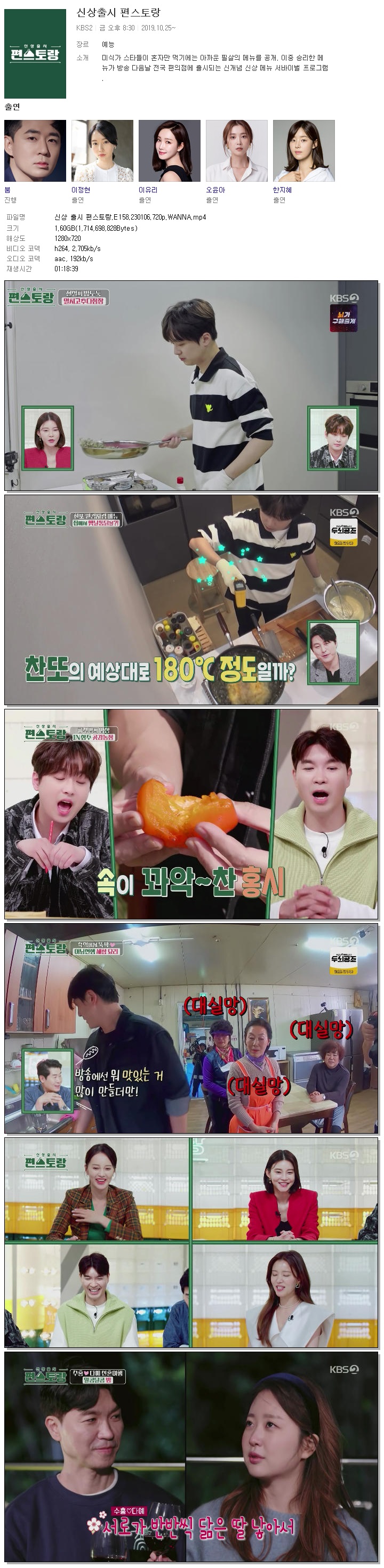 신상 출시 편스토랑.E158.230106.720p.WANNA.mp4 1.6 G 01:18:39 1280x720