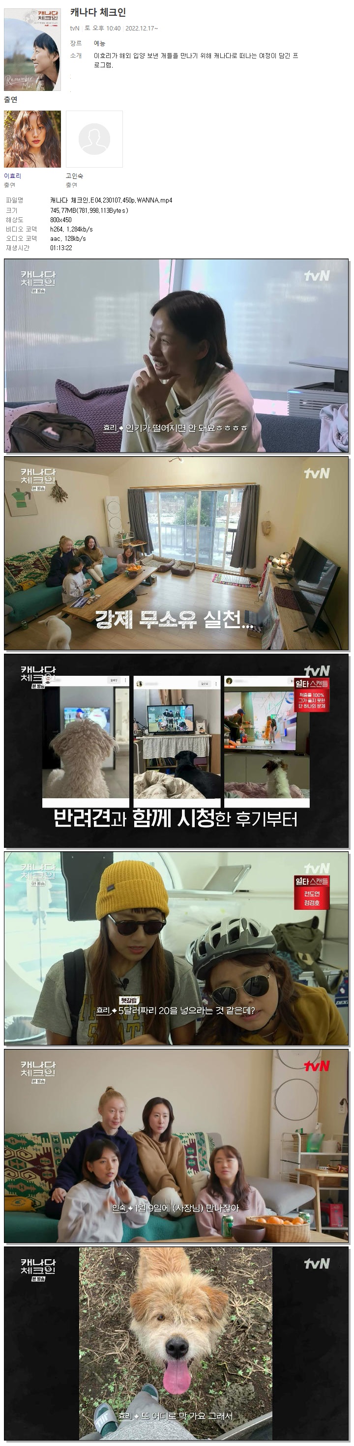 | 캐나다 체크인.E04.230107.450p.WANNA.mp4 | 745.8 M | 01:13:22 | 800x450 |