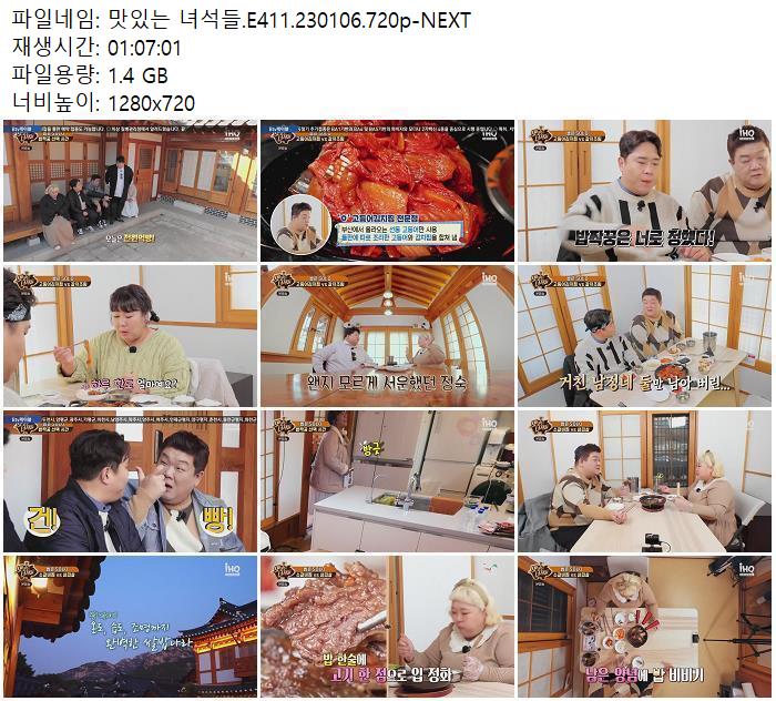 | 맛있는 녀석들.E411.230106.720p-NEXT.mp4 | 1.4 G | 01:07:01 | 1280x720 |