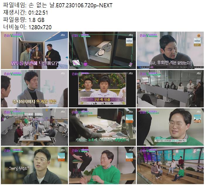 | 손 없는 날.E07.230106.720p-NEXT.mp4 | 1.8 G | 01:22:51 | 1280x720 |