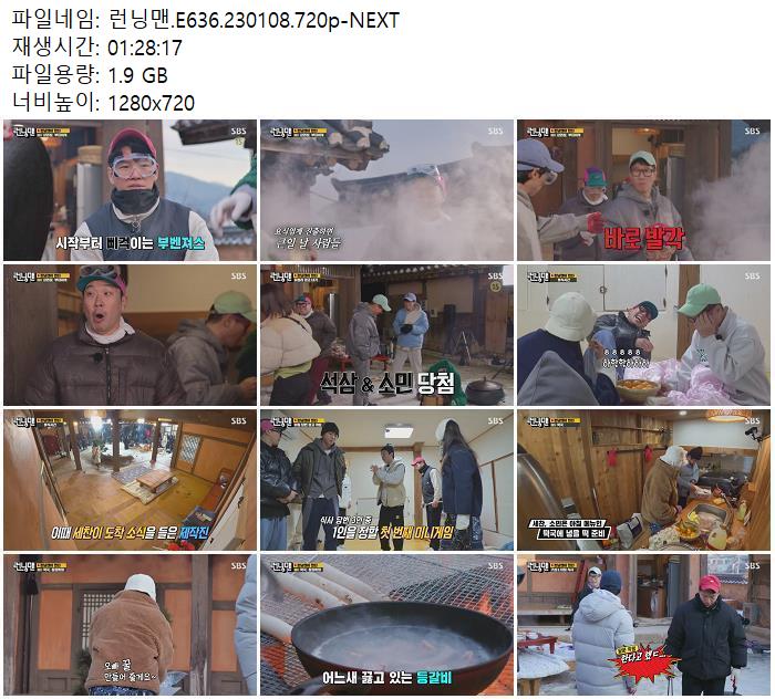 | 런닝맨.E636.230108.720p-NEXT.mp4 | 1.9 G | 01:28:17 | 1280x720 |