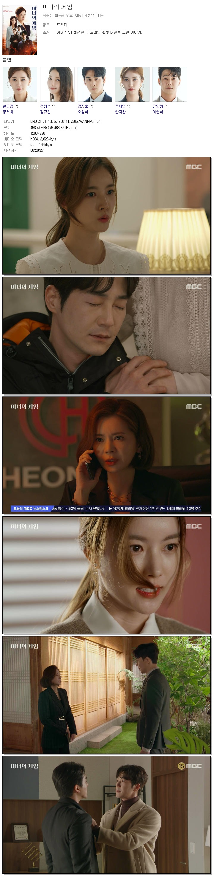 | 마녀의 게임.E57.230111.720p.WANNA.mp4 | 453.4 M | 00:28:27 | 1280x720 |