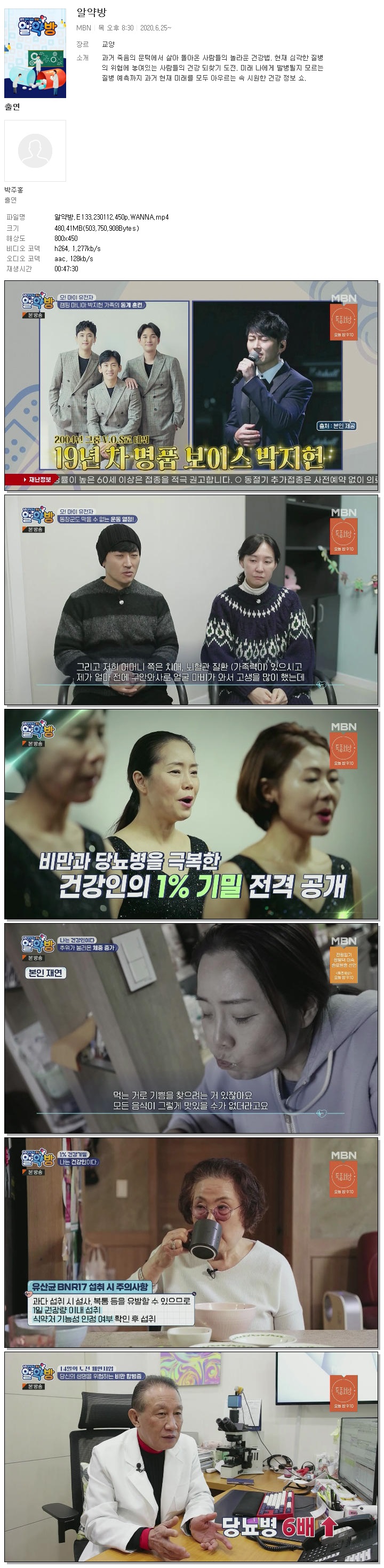 | 알약방.E133.230112.450p.WANNA.mp4 | 480.4 M | 00:47:30 | 800x450 |