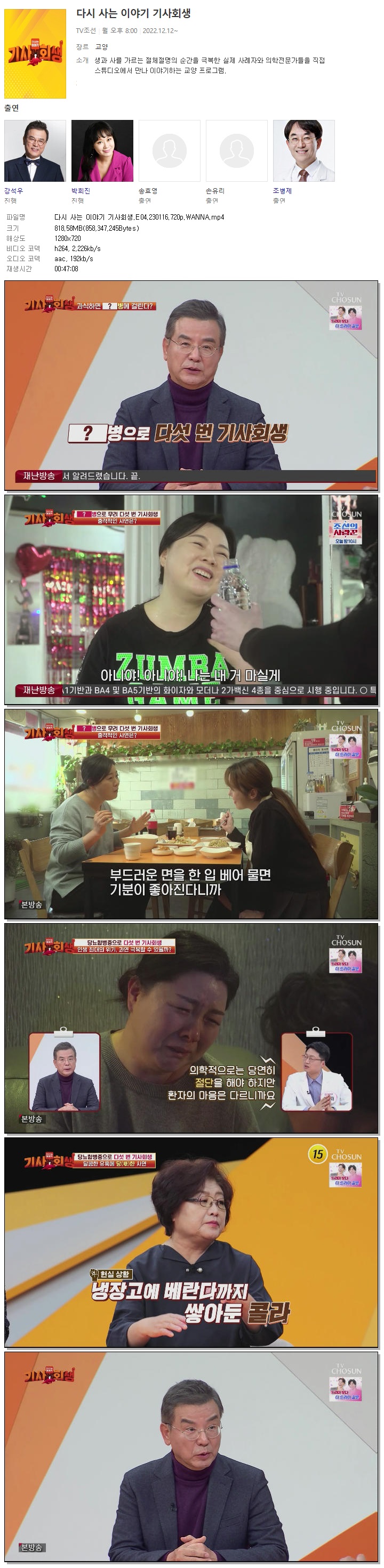 | 다시 사는 이야기 기사회생.E04.230116.720p.WANNA.mp4 | 818.6 M | 00:47:08 | 1280x720 |