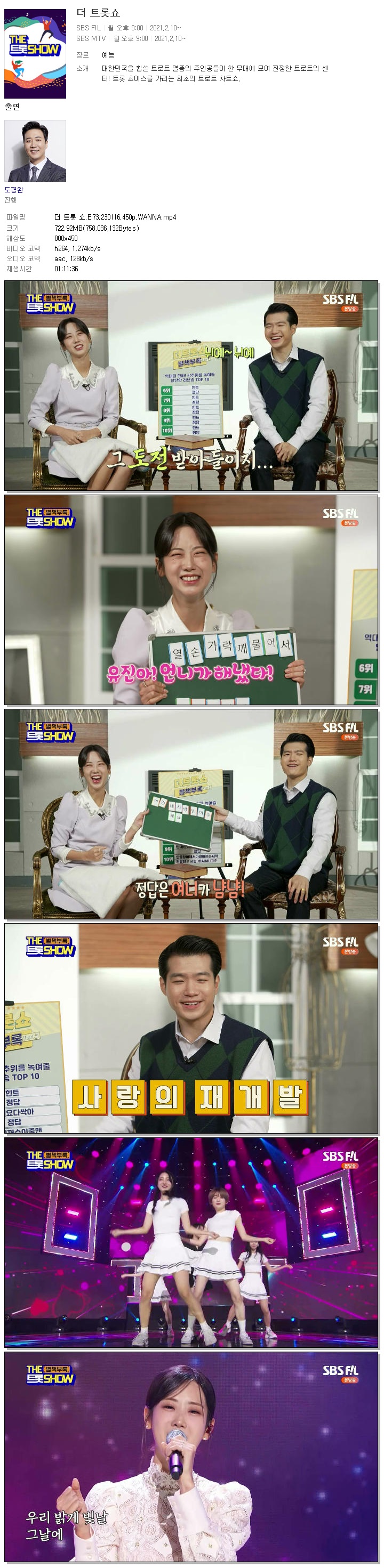 | 더 트롯 쇼.E73.230116.450p.WANNA.mp4 | 722.9 M | 01:11:36 | 800x450 |