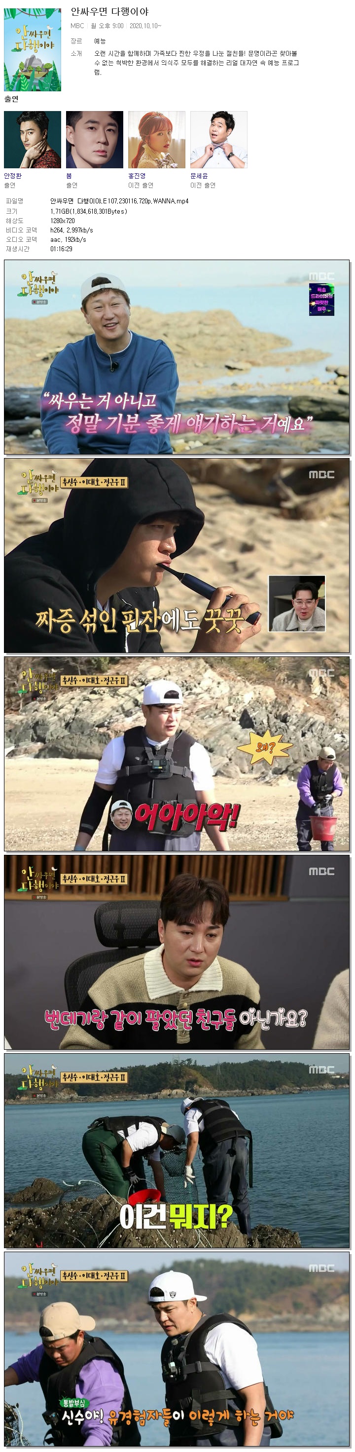 | 안싸우면 다행이야.E107.230116.720p.WANNA.mp4 | 1.7 G | 01:16:29 | 1280x720 |
