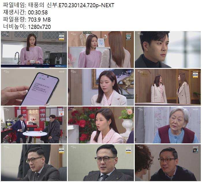 | 태풍의 신부.E70.230124.720p-NEXT.mp4 | 703.9 M | 00:30:58 | 1280x720 |