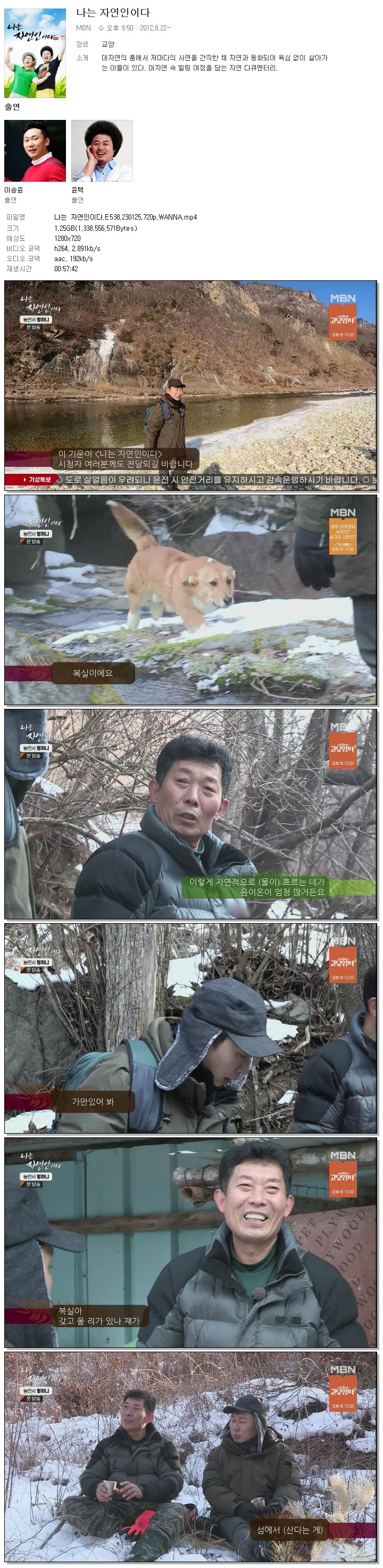 | 나는 자연인이다.E538.230125.720p.WANNA.mp4 | 1.2 G | 00:57:42 | 1280x720 |