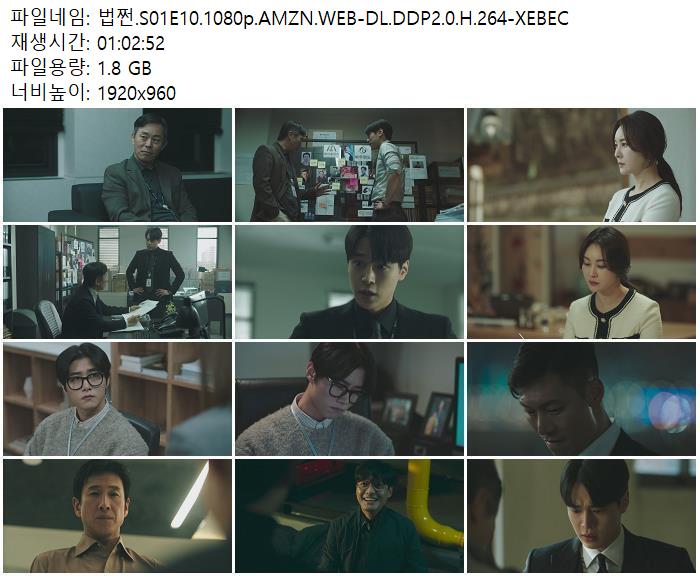 | 법쩐.S01E10.1080p.AMZN.WEB-DL.DDP2.0.H.264-XEBEC.mkv | 1.8 G | 01:02:52 | 1920x1080 |
