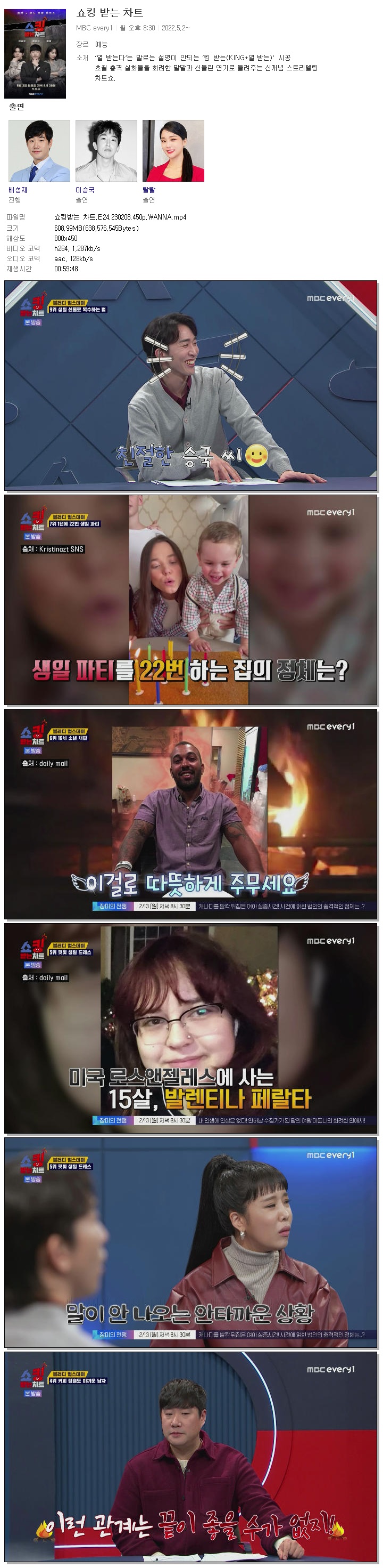 | 쇼킹받는 차트.E24.230208.450p.WANNA.mp4 | 609 M | 00:59:48 | 800x450 |