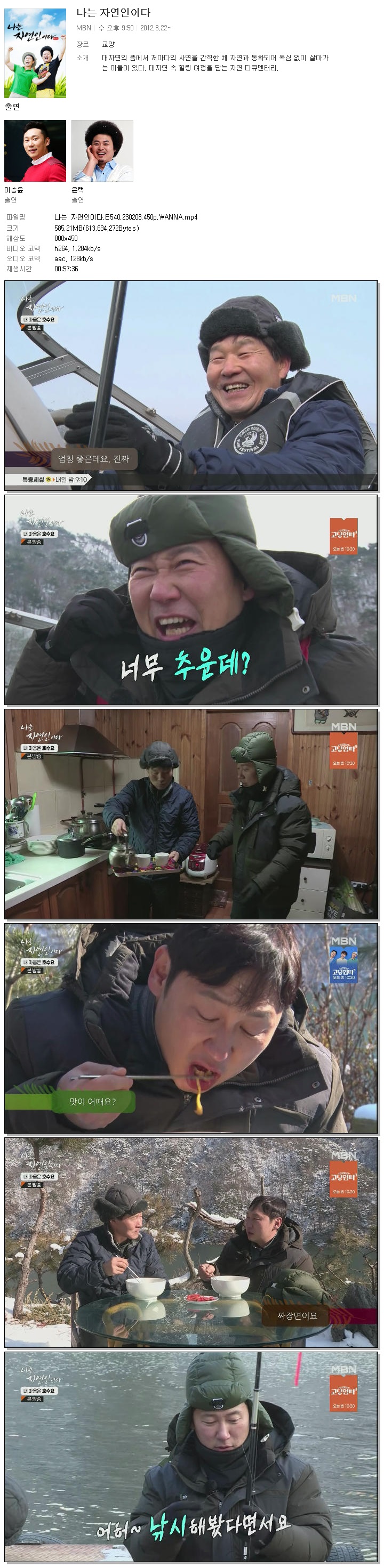 | 나는 자연인이다.E540.230208.450p.WANNA.mp4 | 585.2 M | 00:57:36 | 800x450 |