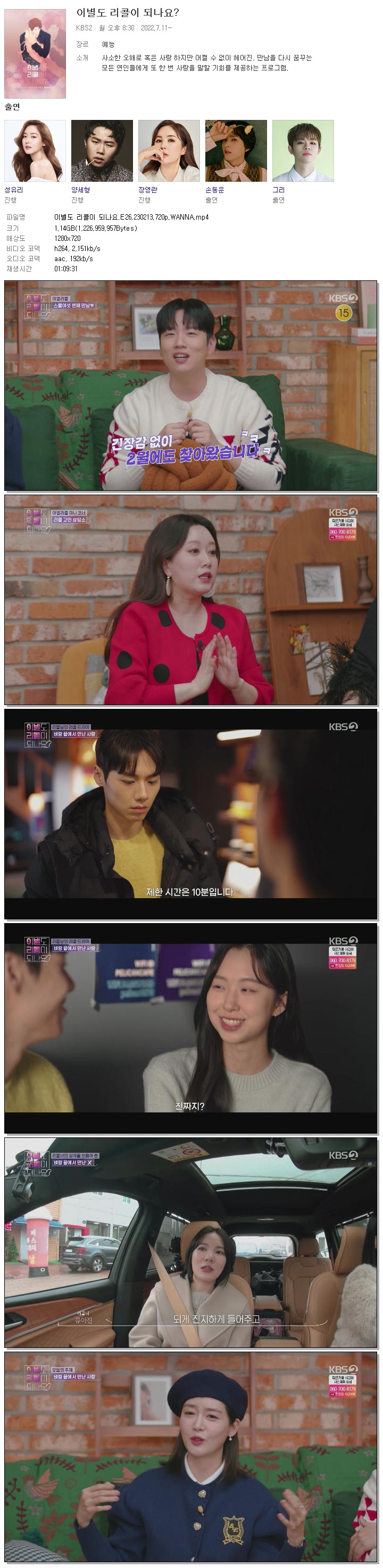 | 이별도 리콜이 되나요.E26.230213.720p.WANNA.mp4 | 1.1 G | 01:09:31 | 1280x720 |