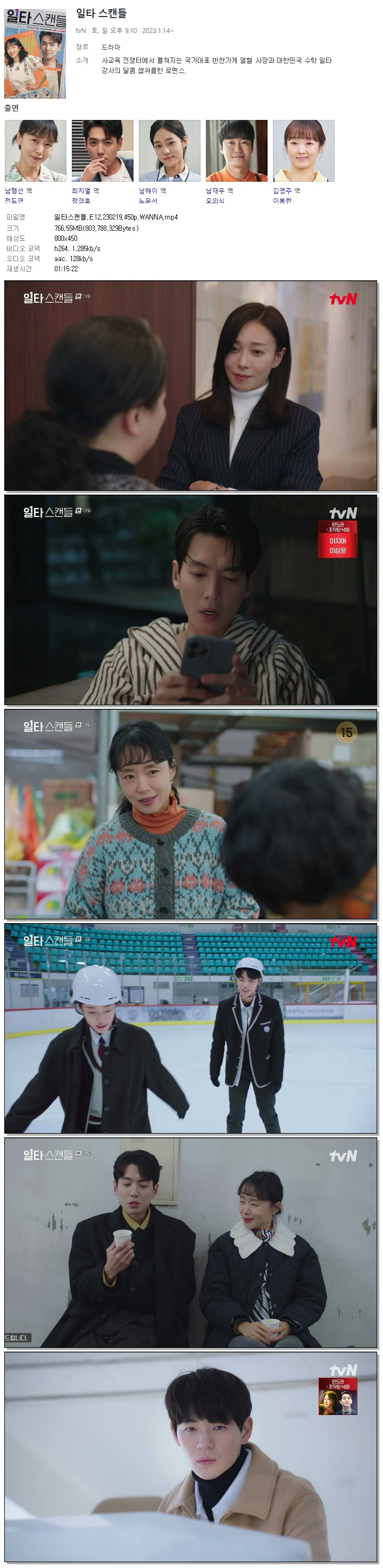 | 일타스캔들.E12.230219.450p.WANNA.mp4 | 766.6 M | 01:15:22 | 800x450 |