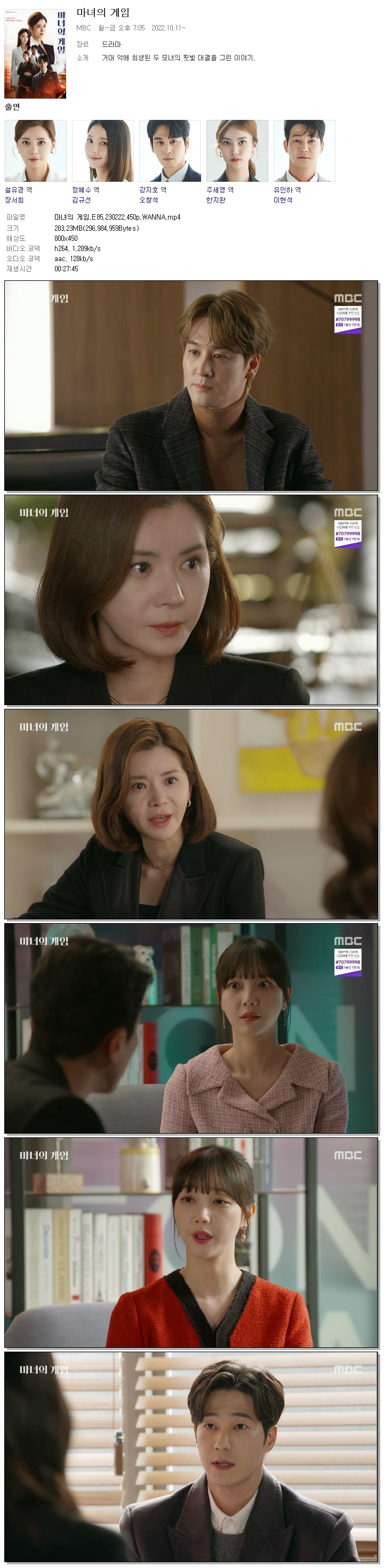 마녀의 게임.E85.230222.450p.WANNA.mp4 283.2 M 00:27:45 800x450