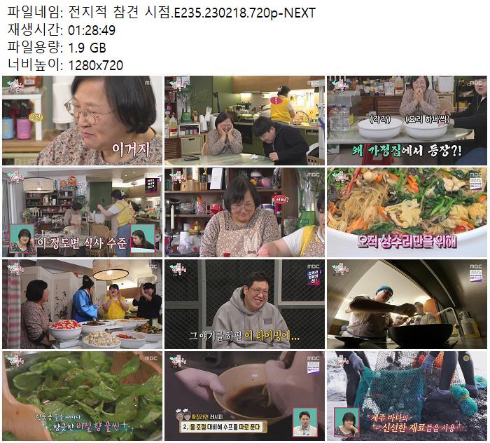 전지적 참견 시점.E235.230218.720p-NEXT.mp4 1.9 G 01:28:49 1280x720