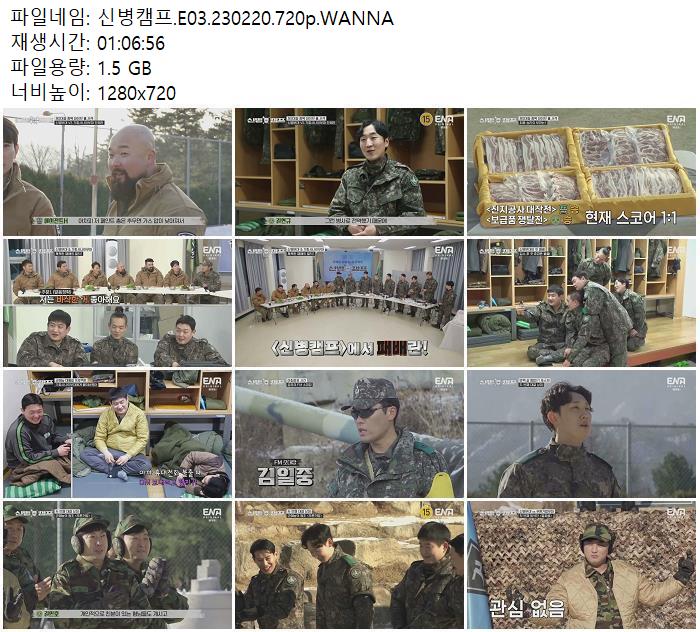 | 신병캠프.E03.230220.720p.WANNA.mp4 | 1.5 G | 01:06:56 | 1280x720 |