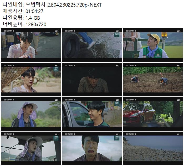 | 모범택시 2.E04.230225.720p-NEXT.mp4 | 1.4 G | 01:04:27 | 1280x720 |
