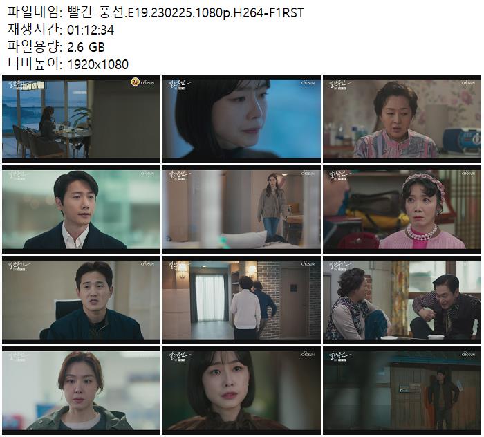 | 빨간 풍선.E19.230225.1080p.H264-F1RST.mp4 | 2.6 G | 01:12:34 | 1920x1080 |
