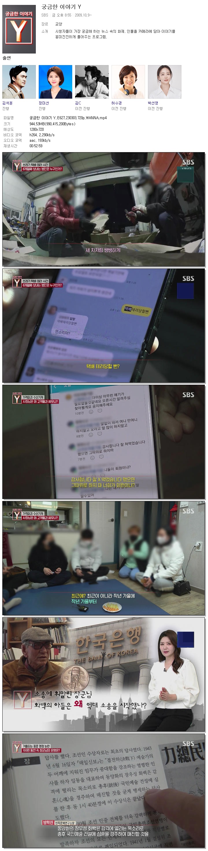 | 궁금한 이야기 Y.E627.230303.720p.WANNA.mp4 | 944.5 M | 00:52:59 | 1280x720 |